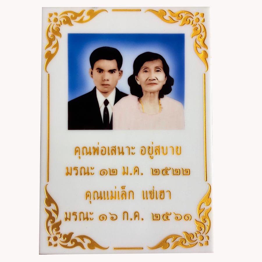 "งานป้ายอัฐิ,ป้ายอักษร,ป้ายอักษรทอง ที่ได้รับการพัฒนาลงลายทอง และการทำภาพหินเซรามิก ลงในแผ่นเดียวกัน"